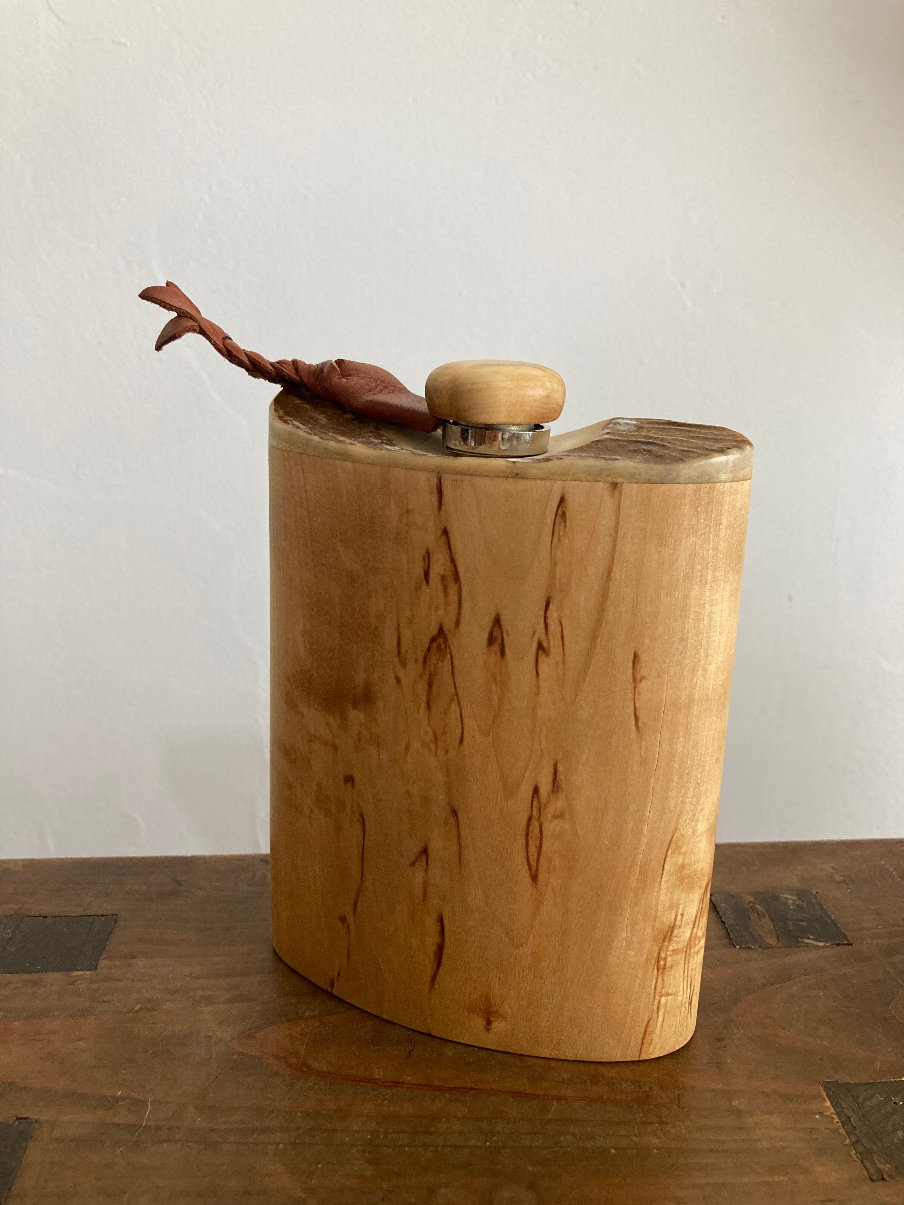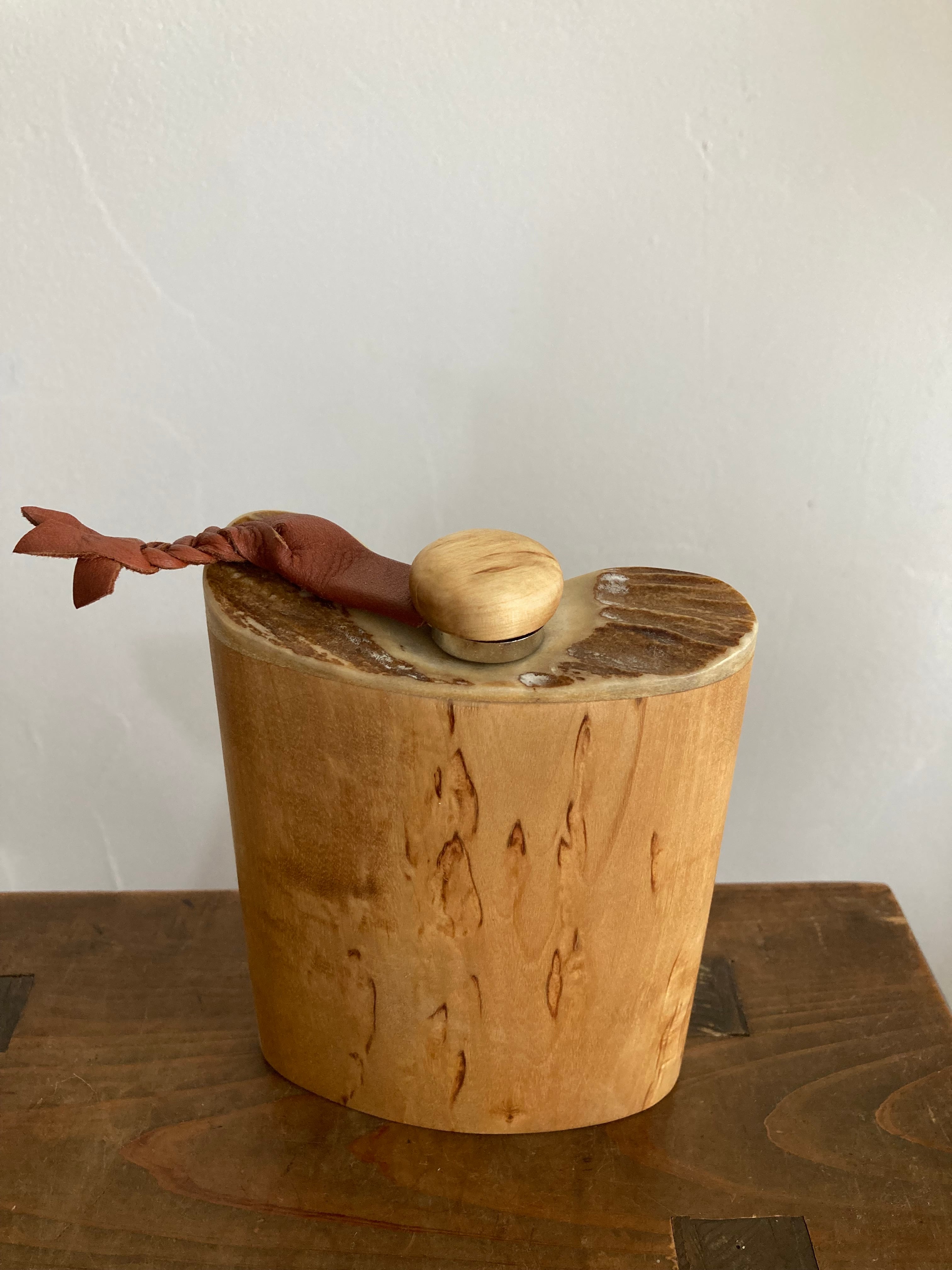 白樺とヘラジカの角飾りのスキットル scandinavic woodworks スカンジナヴィク ウッドワークス ウィスキー キャンプ ククサ ボトル