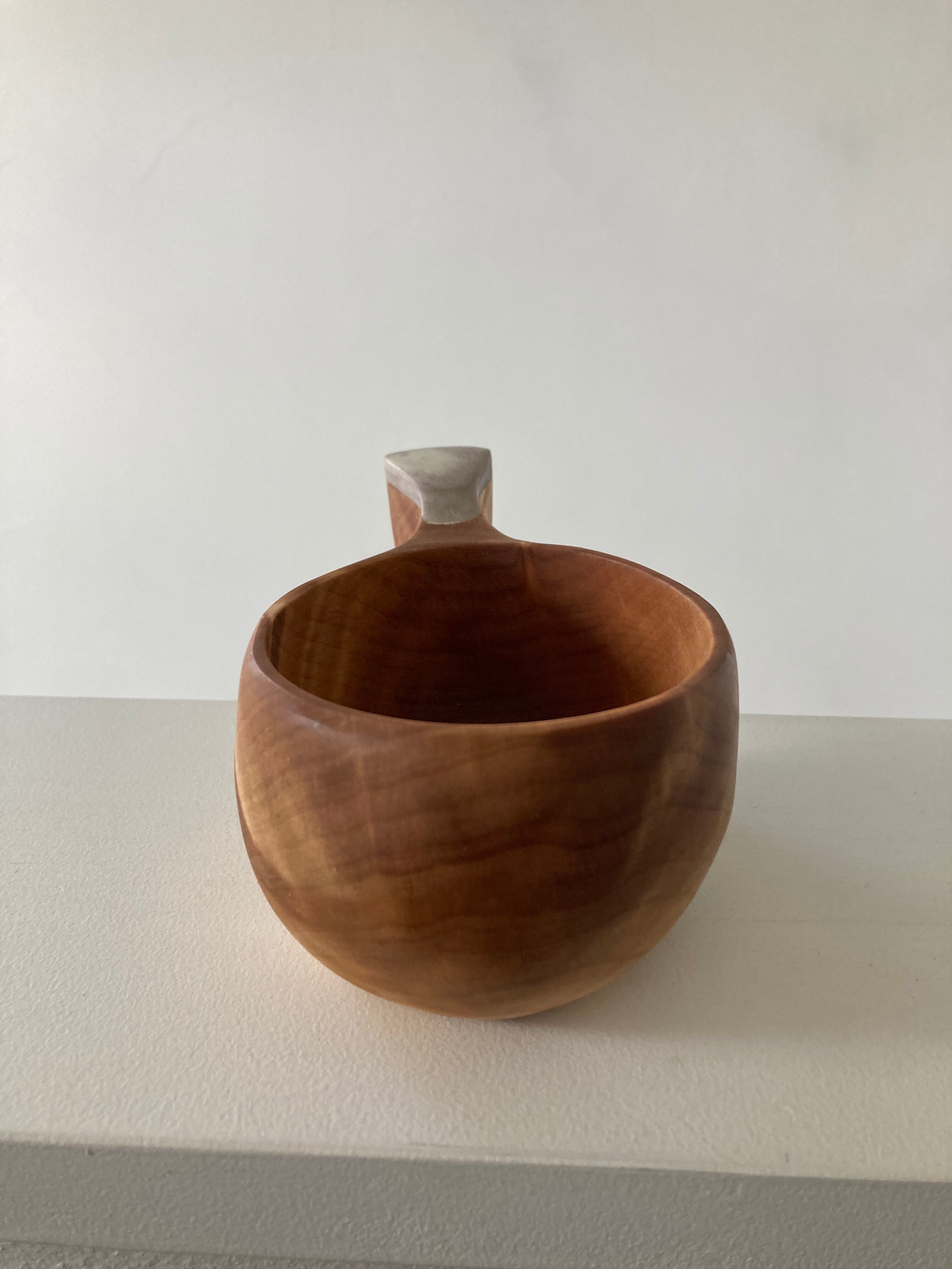 ・ククサの表面には蜜蝋が塗布されており、紙などの油を吸いやすいものに触れるとオイルが染みる場合がありますのでご注意ください。口にされても体に害はありません。使い始めは油が浮くことがありますが、品質に問題はありません。何度か洗うと落ち着いてきます。