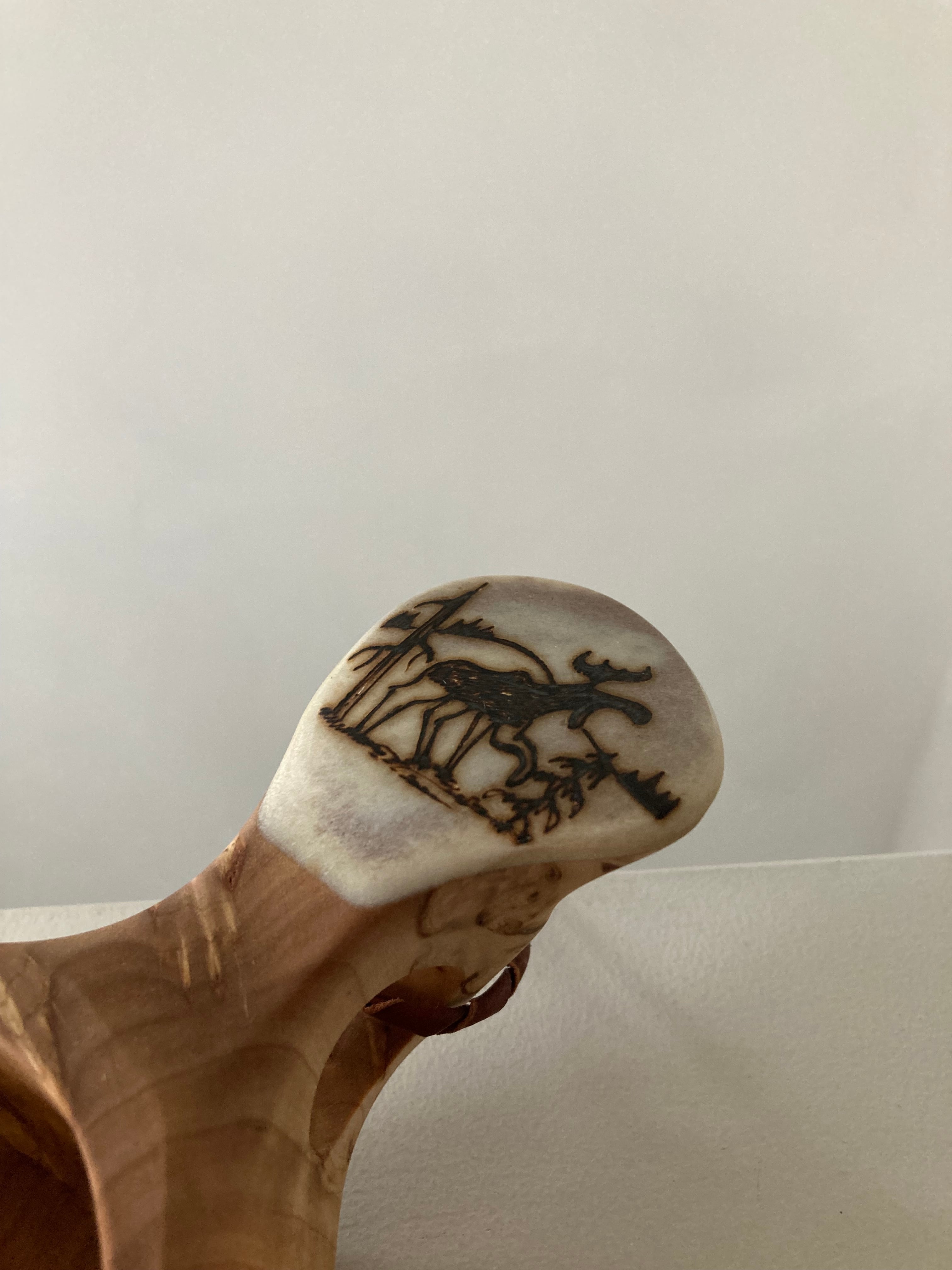 ■材 質:白樺VISAKOIVU(ヴィサコイブ/英名 カーリーバーチ)、トナカイの革、エルクの角(日本名:ヘラジカ)方位磁針の絵柄彫刻