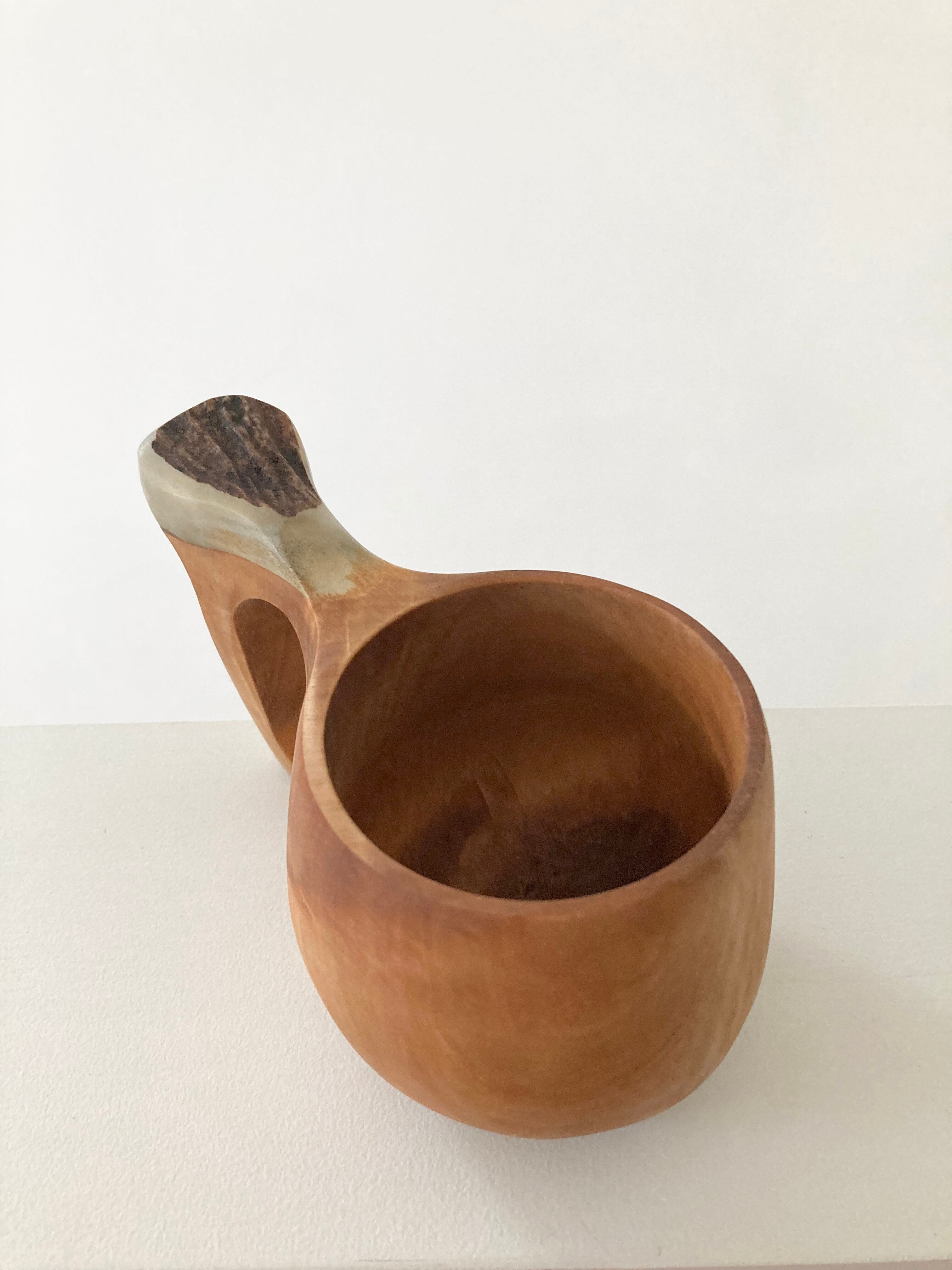 生産終了 スカンジナビク 角飾りつき フィンランド ラップランド ククサ kuksa キャンプ 焚き火 コーヒー ビール ジョッキ 白樺のコブ オーロラ