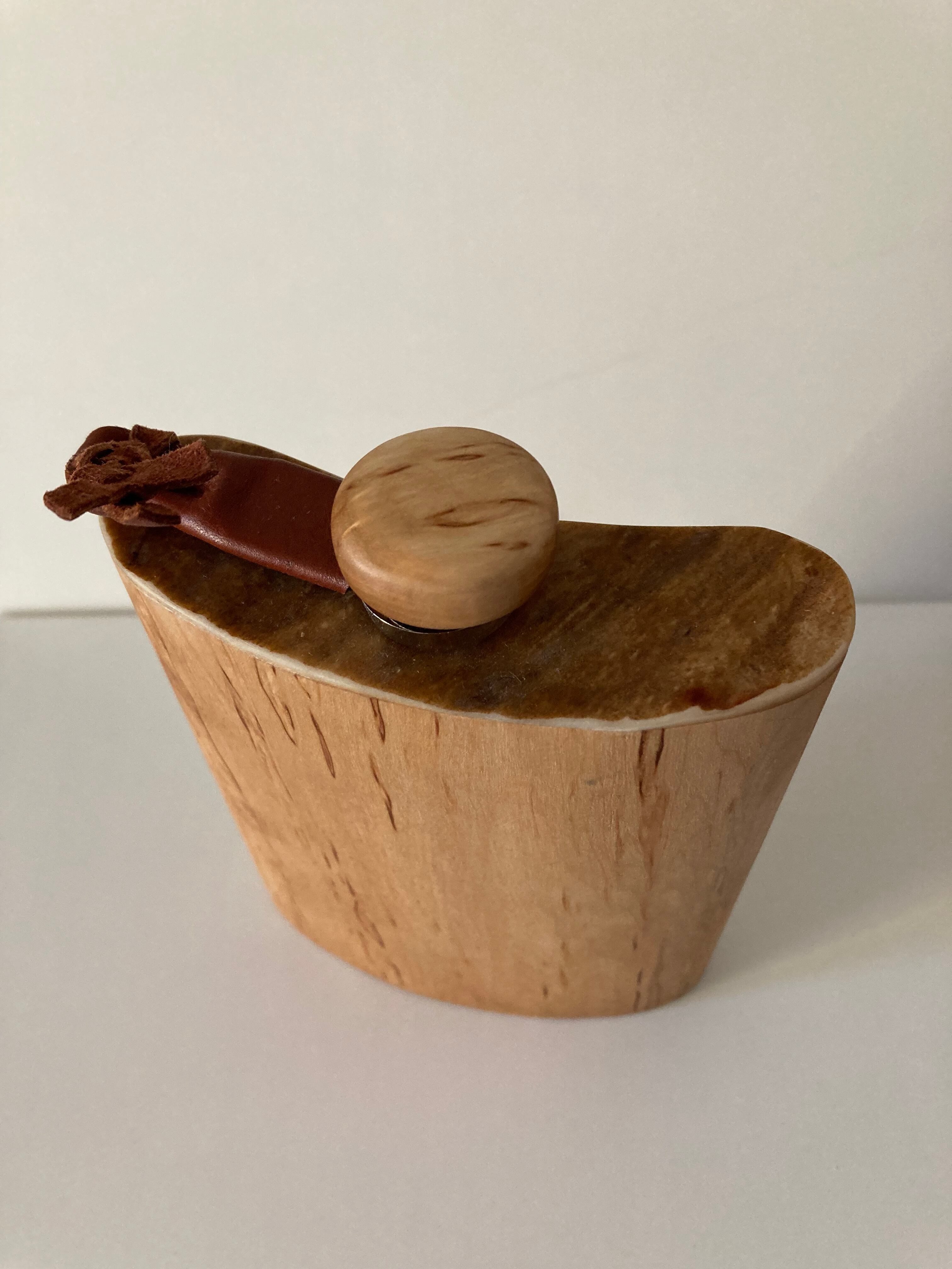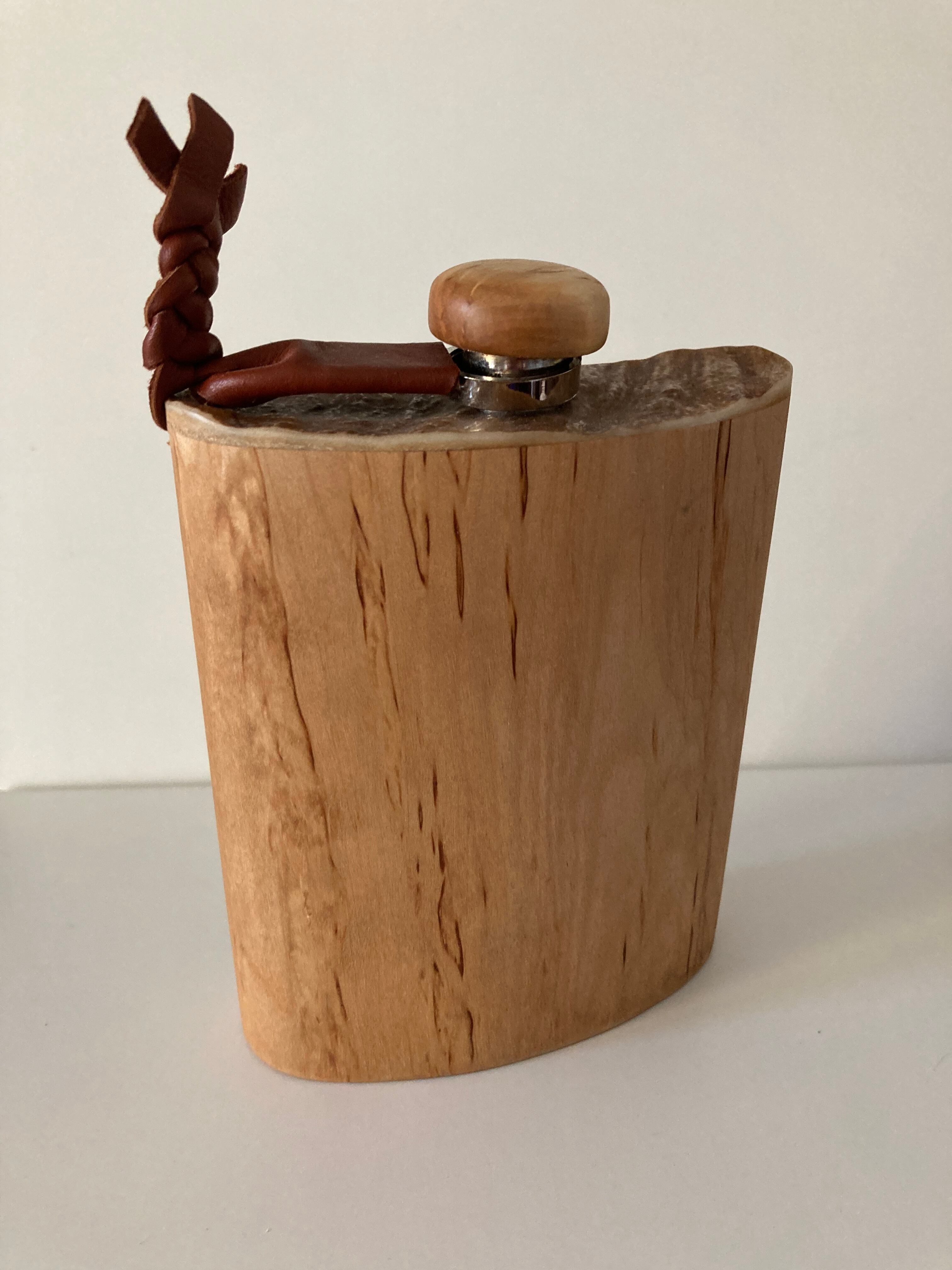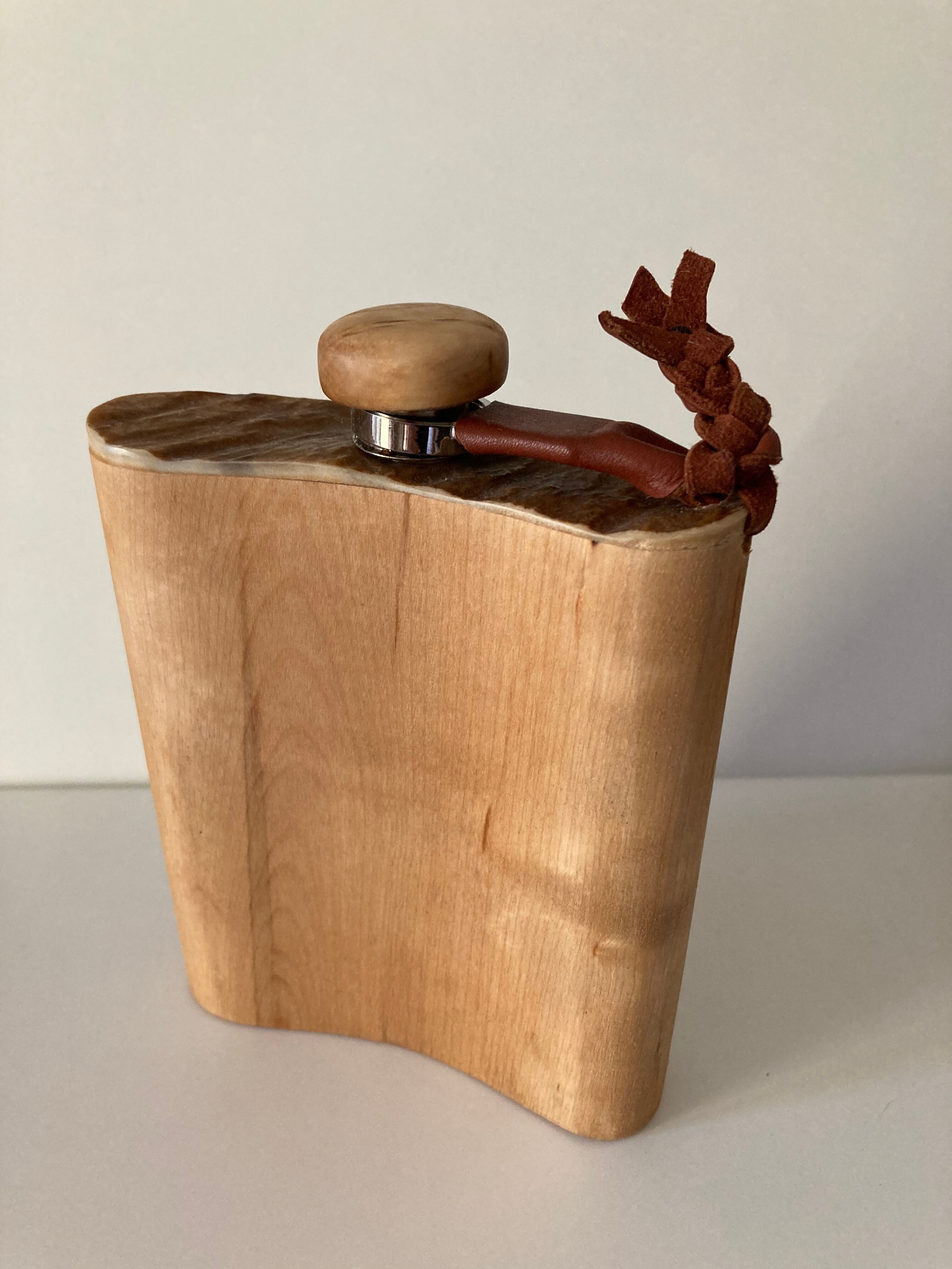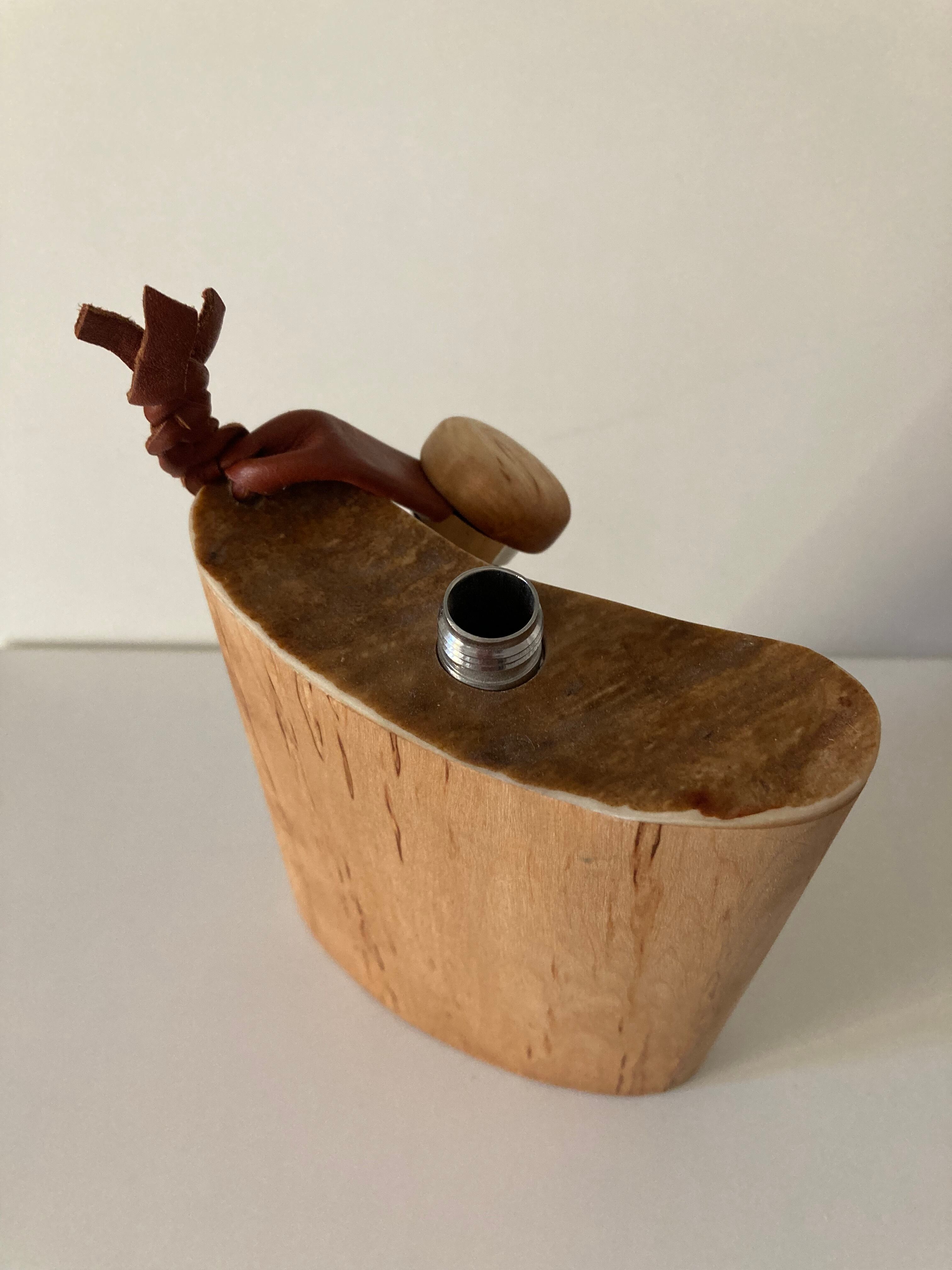 フィンランド産 白樺とヘラジカの角飾りのスキットル ウィスキー キャンプ ククサ ボトル